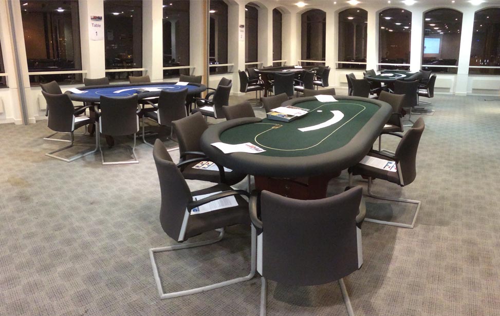 Tournaments are structured according to the number of players present and the duration of the poker tournament. Utilising our full size oval Texas Hold’Em table we are able to accommodate up to 10 players at each of our poker tables, along with a professionally trained Texas Hold’Em poker dealer. 1 to 20 tables are available for tournament hire to entertain 7 to 200 players at any given time, larger tournaments featuring in excess of 200 players can be easily managed with breaks and rotations, with the tournament times and statistics readily available for viewing on our 8 foot screen displaying the information provided by our computerized tournament manager.